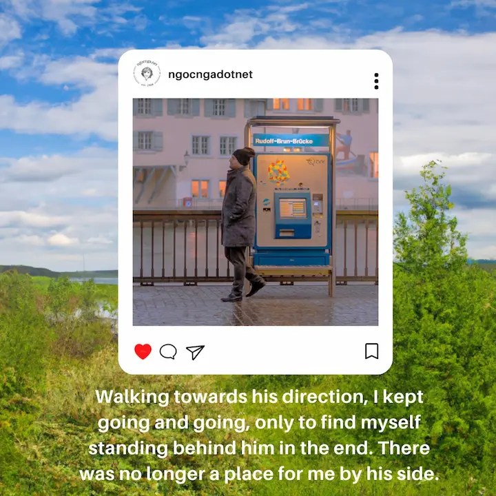Walking towards his direction, I kept going and going, only to find myself standing behind him in the end. There was no longer a place for me by his side.